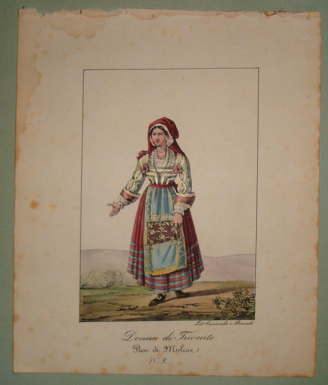 Cm.16x12 oltre margini con titolo. Litografia acquarellata edita da Cuciniello e Bianchi nel 1830 ca., coloritura coeva.
