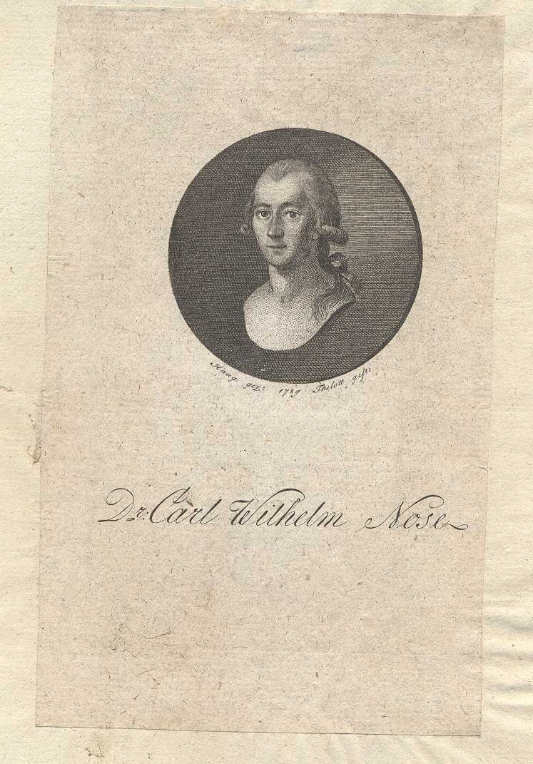 Cm. 10x17 (al vivo), incisione originale su rame, ritratto del medico e filosofo Carl Wilhelm. In buono stato (good copy).