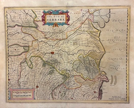 Carta geografica originale (cm. 48,5x37,5 più ampi margini bianchi) tratta dall’edizione in lingua latina dell’ ‘Atlas novus, sive descriptio geographica orbis terrarum’ pubblicato da Johannes Janssonius ed Henricus Hondius. Splendida coloritura d’epoca all’acquarello. Esemplare in ottimo stato di conservazione. Non comune.