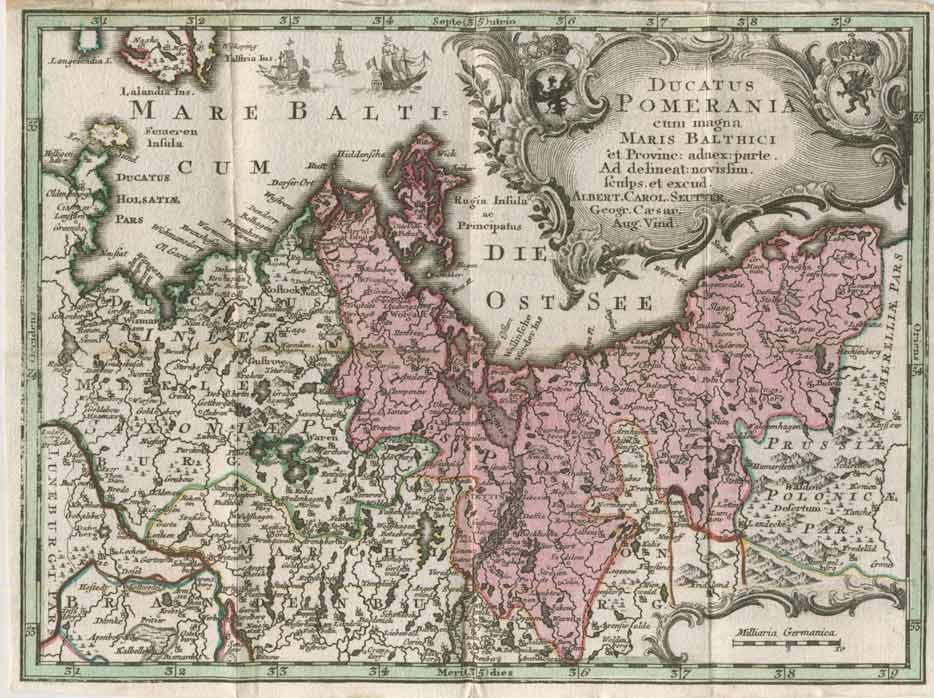 DUCATUS POMERANIA CUM MAGNA MARIS BALTHICI ET PROVINC. ADNEX PARTE. - Ad delineat. novissim. sculps. et excud. Albert Carol Seutter.
