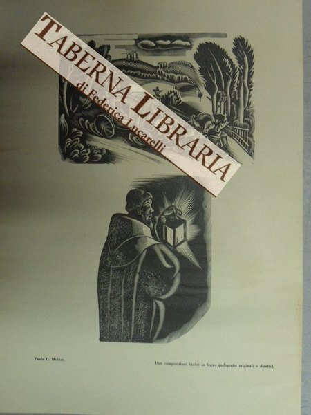 Xilografia originale in nero tratta dalla rivista "L'Eroica", fasc. n.202-203 (giugno - luglio 1935). Dimensioni relative alla sola parte incisa mm 100x115; 125x90 su foglio di mm.325x240. Buon es