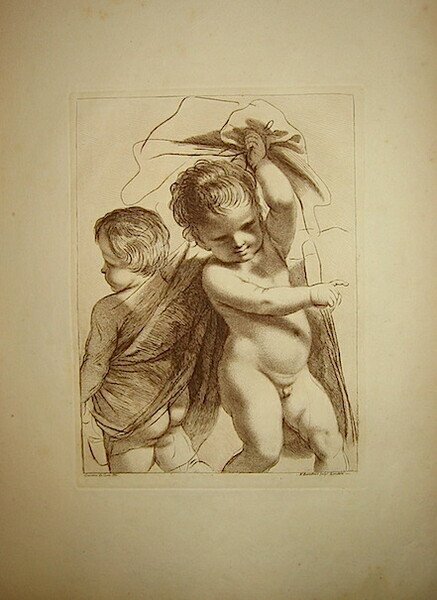 Incisione originale su rame all’acquaforte e bulino (cm. 21,5x29 più ampi margini bianchi) da un soggetto di Gio. Francesco Barbieri detto il Guercino. Carta vergellata. Lievi fioriture marginali, ma ottimo esemplare.