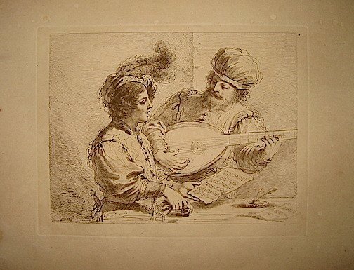 Incisione originale su rame all’acquaforte e bulino (cm. 32,5x25 più ampi margini bianchi) da un soggetto di Gio. Francesco Barbieri detto il Guercino. Carta vergellata. Ottimo esemplare.