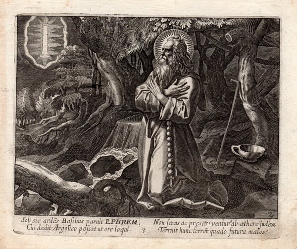 EFREM il SIRO - THOMAS de LEU [Leeuw or Le Leup or Deleu] (1560-1612) "Soli sic ardes BASILIUS pariut ." Santo eremita.