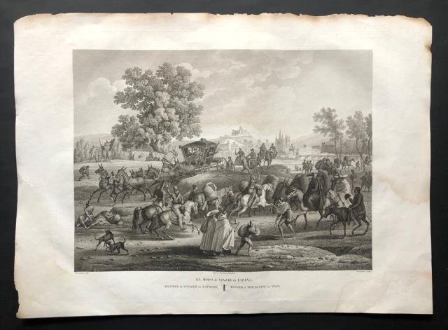 Incisione in rame all’acquaforte, b/n, cm 38,5 x 52,5 (al foglio). Leggeri aloncini ai margini, peraltro veduta finemente incisa e in buono stato di conservazione. Tratta dal “Voyage Pittoresque et Historique de l’Espagne” (Paris, Imprimerie P. Didot L’Ainé, avec les caracteres de Bodoni, 1806 o 1820), opera stampata in folio che consiste in una raccolta di bellissime incisioni in b/n finemente incise, per lo più relative all'Andalusia e alle regioni spagnole dell'Estremadura. Una è la veduta generale di Gibilterra, una di Cadice e una di Malaga; ci sono le vedute generali delle altre principali città, Madrid, Sevilla, Cordova, Toledo, Granada e Alhambra, accompagnate da altre vedute delle stesse città, con figurazioni di interni e di esterni di edifici, monumenti, ornamenti architettonici; alcune sono tavole di arti decorative. .