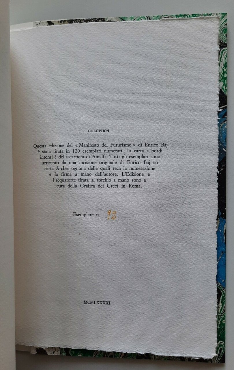 ENRICO BAJ MANIFESTO DEL FUTURISMO STATICO GRAFICA DEI GRECI 1991