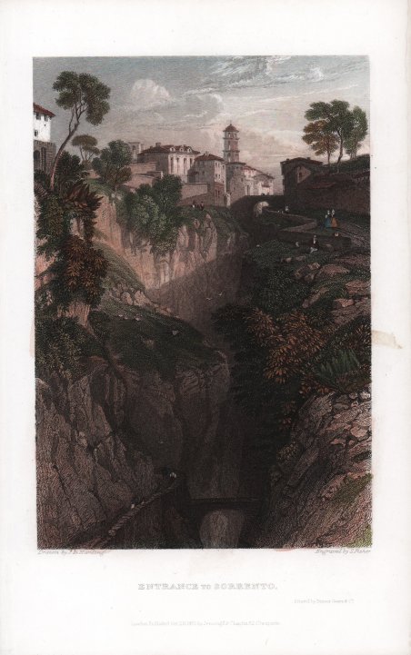 Veduta tratta da ' The Tourist in Switzerland and Italy. Illustrated from drawings by S. Prout, Esq… London: Robert Jennings, 1830 ' di Thomas Roscoe. Il ' Tourist in Switzerland and Italy ' è il primo di nove volumi conosciuti sotto il nome di The Landscape Annual”. I volumi successivi riguardano la sola Italia e poi Francia e Spagna. L'opera è illustrata da incisioni tratte da disegni del pittore inglese Samuel Prout di J. D. Harding ed altri; è stampata a Londra tra il 1830 ed il 1838. ' Incisione in rame, finemente colorata a mano, in ottimo stato di conservazione. View from ' The Tourist in Switzerland and Italy. Illustrated from drawings by S. Prout, Esq. London: Robert Jennings, 1830 ' by Thomas Roscoe. The Tourist in Switzerland ' and Italy ' is the first of nine volumes known as ' The Landscape Annual. Subsequent volumes cover Italy alone and then France and Spain. The work is illustrated with engravings from drawings by the English painter Samuel Prout, J. D. Harding and others; it was printed in London between 1830 and 1838. ' Copperplate, beautiful hand-colouring, in excellent condition. Cfr.