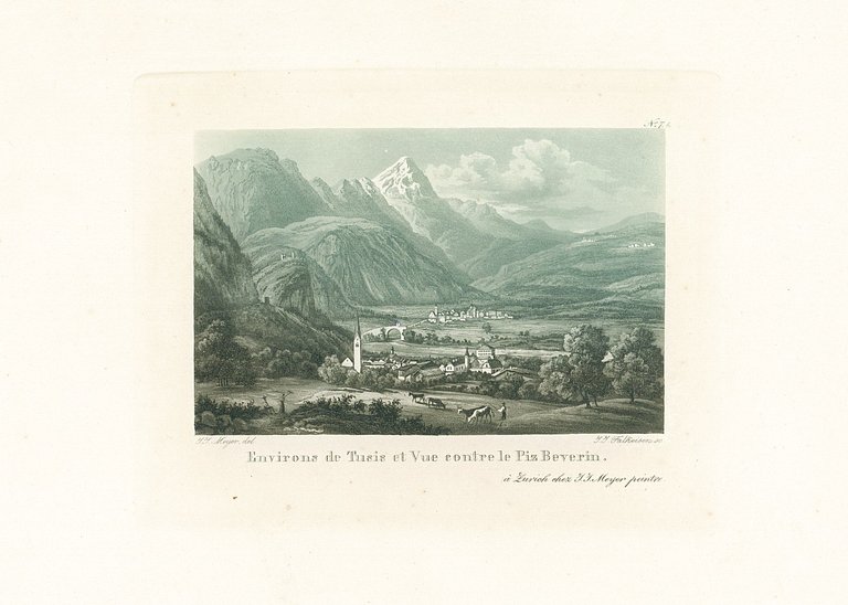 Environes de Tuesis et Vue contre le Pis Beverin | Stampe | Meyer Johann Jakob dis. & J. J. Falkeisen inc.