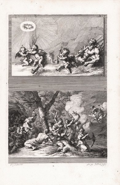 Opera tratta dalla celebre ' Academia Todesca della Architectura, Scultura & Pittura: oder Teutsche Academie der Edlen Bau, Bild-und Mahlerey-Künste, raccolta monumentale, riccamente illustrata da centinaia di incisioni raffiguranti antichità, architettura e mitologia classica, edita a Norimberga e Francoforte tra il 1675 ed il 1680. ' Per le incisioni, il Sandrart si avvalse dei suoi collaboratori Karl Gustav von Amling (1650-1703); Philip Kilian (1628-1693); Richard Collin (1627-97); Georg Andreas Wolfgang (1631-1716); Johann Georg Waldreich (d.1680); Melchior Küsel (1626-1683); Franck, Johann (fl.1659-1690); George Christoph Eimmart (1638-1705); Susanna Maria von Sandrart (1658-1716); Bartholomäus Kilian (1630-1696). L'opera è piena di illustrazioni di edifici romani antichi e moderni, scultura, teoria della pittura, biografie di artisti, tra cui artisti tedeschi e contemporanei (cioè del XVII secolo), e antichità. Joachim von Sandrart fu un pittore di una certa importanza, ma è per la sua ' Teutsche Academie ' che è principalmente ricordato. Il suo compendioso trattato include sezioni sulla scultura antica e l'architettura, la prospettiva, la teoria della pittura, biografie di artisti, una traduzione delle Metamorfosi di Ovidio e così via. La seconda parte del Libro I pretende di dare una storia dell'arte dalle sue prime origini, e si apre con un'incisione di due scene di racconti leggendari della scoperta del disegno. L'opera è dedicata alla nazione tedesca di fama mondiale e ai campioni e amanti dell'arte ('Der Welt-berühmten Teutschen Nation . Kunst-Helden und Kunstliebenden'). Acquaforte, con margini, ottimo stato di conservazione. Bibliografia National Gallery (Washington), ' Mark J. Millard, III (1998), no. 111; F.W. H. Hollstein, ' German engravings . ca. 1400-1700 ' (1954-), 38-41; Anna Schreurs, ' Unter Minerva schutz: bildung durch kunst in Joachim von Sandrarts 'Teutscher Academie' ' (2012). Plate taken fom the monumental ' Academia Todesca della Architectura, Scultura & Pittura: oder Teutsche Academie der Edlen Bau, Bild-und Mahlerey-Künste ' (Deutsche Academy of Architecture - Sculpture – Painting). ' The first edition, in German, was published by Joachim von Sandrart in Nuremberg, in three volumes respectively in 1675, 1679 and 1680.For the plates Sandrart used his students as and many others artist as ' Karl Gustav von Amling (1650-1703); Philip Kilian (1628-1693); Richard Collin (1627-97); Georg Andreas Wolfgang (1631-1716); Johann Georg Waldreich (d.1680); Melchior Küsel (1626-1683); Franck, Johann (fl.1659-1690); George Christoph Eimmart (1638-1705); Susanna Maria von Sandrart (1658-1716); Bartholomäus Kilian (1630-1696). The work is full of illustrations of ancient and modern Roman buildings, sculpture, the theory of painting, biographies of artists, including German and contemporary (ie seventeenth-century) artists, and antiquities. Joachim von Sandrart was a painter of some note but it is for his ' Teutsche Academie ' that he is chiefly remembered. His compendious treatise includes sections on ancient sculpture and architecture, perspective, the theory of painting, artists’ biographies, a translation of Ovid’s Metamorphoses and so on. The second part of Book I purports to give a history of art from its earliest origins, and opens with an engraving of two scenes of legendary accounts of the discovery of drawing. ' The frontispiece to Volume I is signed as drawn by J. de Sandrart and engraved by C.G. Amling; that of Volume II is signed as drawn by Sandrart and engraved by R. Collin. The portrait in Volume I is signed as painted by J.U. Mair and engraved by P. Kilian; that in Volume II is signed as engraved by R. Collin. Many plates are signed as drawn by Sandrart and engraved by R. Collin or other engravers (J. Franck, G.A. Wolfgang, J.G. Waldreich, I.I. Thourneyser, Melchior Küsell, G. C. Eimmart, B. Kilian, Jacob Sandrart, Joh. Meyer, Susanna von Sandrart, J.A. Boener, C. Meyer). Many plates are unsigned.The work is dedicated to the world-renowned German nation and to champions and lovers of art ('Der Welt-berühmten Teutschen Nation . Kunst-Helden und Kunstliebenden'). Etching with margins, very good condition. References National Gallery (Washington), ' Mark J. Millard, III (1998), no. 111; F.W. H. Hollstein, ' German engravings . ca. 1400-1700 ' (1954-), 38-41; Anna Schreurs, ' Unter Minerva schutz: bildung durch kunst in Joachim von Sandrarts 'Teutscher Academie' ' (2012). Cfr.