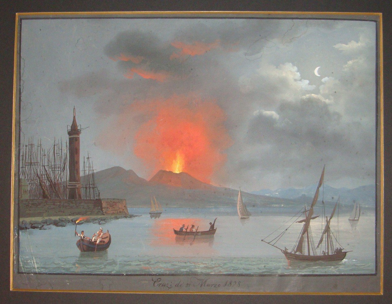 Eruzione del Vesuvio del 1828. 1840 ca. Cm.33x46 oltre margini. Veduta originale a la gouache.
