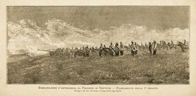 Esercitazioni d'artiglieria al poligono Nettuno - Piazzamento della 1° brigata