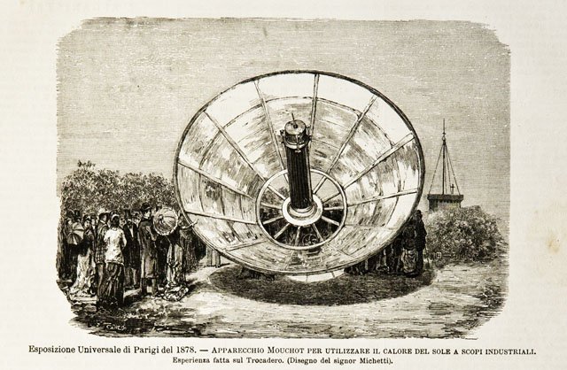 Esposizione Universale di Parigi del 1878.- Apparecchio Mouchot per utilizzare il calore del sole a scopi industriali