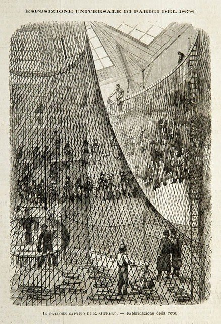 Esposizione Universale di Parigi del 1878 / Il pallone captivo di E. Giffard.- Fabbricazione della rete