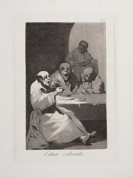 Opera tratta dai "Los Caprichos", per la prima volta pubblicati nel 1799. Prova della quarta edizione di dodici, stampata dalla calcografia di Madrid, circa 1870. Aquaforte, acquatinta brunita e puntasecca, in perfetto stato di conservazione. La serie chiamata Los Caprichos, è composta da ottanta incisioni, la cui prima edizione [l’unica a non essere pubblicata postuma] venne alla luce ne 1799. Curata in fase d’edizione dallo stesso artista, la serie fu commercializzata e dopo poco tempo ritirata dal mercato. Infatti, a causa dei numerosi soggetti che ironizzavano sulla società spagnola di fine secolo, il Goya subì una censura. L’interpretazione dei soggetti rappresentati su queste lastre, sempre enigmatiche, è spesso controversa Etching with burnished aquatint and engraving, 1799. From the fourth edition of twelve of the so-called "Los Caprichos" series, edited by the Madrid Calcografia [circa 1870].A very good impression, with good contrast, printed on contemporary paper, customary margins, in very good conditions. The series called Los Caprichos, consists of eighty etchings. This first edition of 1799, the only one not to be published posthumously, is imprinted on soft laid pape. Cured in phase edition by the same artist, the series was marketed and before long withdrawn from the market. In fact, because of the many subjects that mocked the Spanish society of the century, Goya suffered censorship. The interpretation of the subjects represented on these plates, always enigmatic, is often controversial. Cfr. Harris 48, Delteil 50