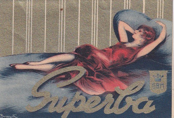 Etichetta/biglietto SUPERGA GBM. Illustratore Brasch