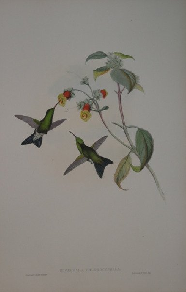 Litografia tratta dal famoso ' The Birds of New Guinea and the Adjacent Papuan Islands, ultimo ed importantissimo lavoro di John Gould. L’opera, tirata a soli 250 esemplari, è molto rara; iniziata nel 1875, fu completata da Richard Bowdler Sharpe nel 1888 a causa della morte di Gould. ' John Gould (Lyme Regis, 14 settembre 1804 – Londra, 3 febbraio 1881) è stato un ornitologo e naturalista britannico. Destinato fin dalla giovinezza a seguire la carriera paterna di giardiniere presso il Castello di Windsor, grazie alle sue precoci conoscenze in tassidermia ebbe l'occasione di entrare a soli 23 anni (1827) nel Museo della Zoological Society di Londra, come conservatore. Gould affinò le sue conoscenze artistiche e scientifiche in ornitologia, consultando i migliori lavori del tempo, in particolari quelli di John James Audubon, William Swainson e Thomas Bewick. Tra il 1832 e il 1837 comparve ' The Birds of Europe, opera in 5 volumi e con ben 448 tavole litografate e colorate a mano. Per la gigantesca impresa Gould si valse della collaborazione della moglie e del celebre poeta e pittore inglese Edward Lear. Una prerogativa che salvò sin dall'inizio Gould dal tracollo economico fu quella di affrontare questi dispendiosi lavori facendoli uscire in sottoscrizione e a fascicoli. ' Dopo un viaggio in Australia e in Tasmania, pubblicò, con l'aiuto di Elizabeth per i primi volumi, ' The Birds of Australia ' (1840-1848) in ben 7 volumi e 600 tavole, cui seguì tra il 1851 e il 1869 un ' Supplement ' di 81 tavole. Tra il 1862 e il 1873 pubblica ' The Birds of Great Britain, ' in 5 volumi e con 367 tavole. Pubblicò ben 41 libri, per un totale di 2999 tavole litografate e dipinte a mano, quasi tutte dedicate agli uccelli, consacrandosi così fra i più noti ornitologi inglesi dell'età vittoriana Litografia, bellissima coloritura coeva, in ottimo stato di conservazione. Litograph taken form the famous ' The Birds of New Guinea and the Adjacent Papuan Islands, Gould’s last great work. ' With only about 250 sets made, it is amongst the rarest of all Gould's works and was completed after his death by Richard Bowdler Sharpe. ' Sharpe then in charge of the of the bird collection at the British Museum, assumed the authorship halfway through the series in 1881, after the twelfth part had been issued. Sharpe was more than forty years junior to Gould, whom he had meet when he was only fifteen, and they both shared a passionate interest in ornithology. In his last years, although an invalid and often in pain, Gould was always pleased when Sharpe visited him to look at his collection of skins and discuss the latest bird discoveries. John Gould (Lyme Regis, 14 September 1804 - London, 3 February 1881) was a British ornithologist and naturalist. Destined from his youth to follow his father's career as a gardener at Windsor Castle, thanks to his early knowledge in taxidermy had the opportunity to enter at only 23 years (1827) in the Museum of the Zoological Society of London, as a conservator. Gould refined his artistic and scientific knowledge in ornithology, consulting the best works of the time, in particular those of John James Audubon, William Swainson and Thomas Bewick. Between 1832 and 1837 appeared ' The Birds of Europe, ' a work in 5 volumes and with 448 plates lithographed and colored by hand. For this gigantic undertaking Gould availed himself of the collaboration of his wife and the famous English poet and painter Edward Lear. A prerogative that saved Gould from economic collapse from the very beginning was that of dealing with these expensive works by publishing them in subscriptions and in dossiers. After a trip to Australia and Tasmania, he published, with the help of Elizabeth for the first volumes, ' The Birds of Australia ' (1840-1848) in 7 volumes and 600 plates, followed between 1851 and 1869 by a Supplement of 81 plates. Between 1862 and 1873 he published The ' Birds of Great Britain, in 5 volumes and 367 plates. He published 41 books, for a total of 2999 plates lithographed and hand-painted, almost all dedicated to birds, thus establishing himself among the most famous English ornithologists of the Victorian age. Perfect condition. Cfr.