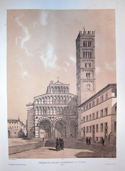 FACADE DE L'EGLISE CATHEDRALE (Il duomo). Lucca. Riproduzione tratta dall'album "La Toscane" di André Durand.