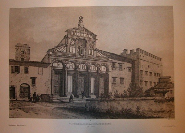 FACADE DE L'EGLISE DE SAN-MINIATO-AL-MONTE. Pres Firenze. Riproduzione tratta dall'album "La Toscane" di André Durand.