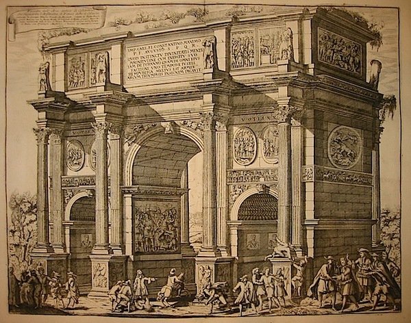 Facciata dell’Arco antico di Costantino, che risguarda l’Anfiteatro di Flavio detto il Colosseo