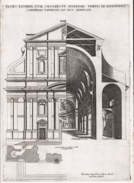 Facies Externa Prospectu Interiori Templi ab Alexandro Cardinali Farnesio.