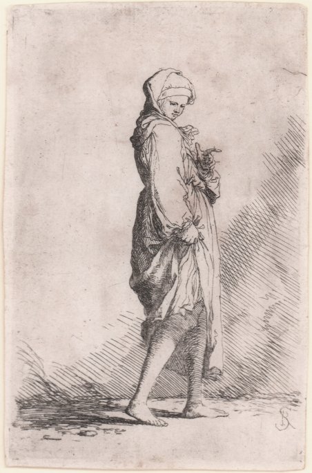 Acquaforte e puntasecca, 1656/8 circa, monogrammata in lastra. Della serie conosciuta come ' Diverse Figure. Bellissima prova, ricche di toni, impressa su carta vergata coeva, con sottili margini, in eccellente stato di conservazione. Esemplare in secondo stato, tutte con il monogramma; le prove di primo stato, ove esistano, sono senza monogramma e note in un solo esemplare. Conosciuta con il nome di ' Diverse Figure ' o ' Figurine, rappresentano senza dubbio l’opera grafica più famosa di Salvator Rosa. Già in epoca era considerata un modello per i giovani artisti, e venne più volte copiata sia in Italia che all’estero. Nelle figure dei soldati in costumi esotici oppure d’invenzione il Rosa svolge un tema trattato da molti incisori quali Callot, Della Bella e Filippo Liagno, con il quale aveva un rapporto stretto, e tramite il quale probabilmente arrivò a conoscere i soggetti dei lanzichenecchi del XV secolo di Dürer e Urs Graf. ' Una lettera dell’artista all’amico Ricciardi datata 1656 permette di datare la serie con sicurezza la periodo 1656/8. Bartsch elenca l’opera composta da 61 stampe, mentre Rotili e Wallace descrivano alcune rare variante dei soggetti, poi mai inserite nella serie, portando il numero delle Figurine a 72. Etching and drypoint, circa 1656/8, monogrammed in plate. From the series known as ' Diverse Figure. Beautiful proof, rich in tone, impressed on contemporary laid paper, with thin margins, in excellent condition. Example of the second state, sjowing the Rosa’s monogram; first-state proofs, where they exist, are unmonogrammed and known in only one copy. Known as ' Diverse Figure ' or ' Figurine, they are without doubt the most famous graphic work of Salvator Rosa. Already at that time it was considered a model for young artists, and was copied several times both in Italy and abroad. In the figures of soldiers in exotic or invented costumes, Rosa develops a theme treated by many engravers such as Callot, Della Bella and Filippo Liagno, with whom he had a close relationship, and through whom he probably came to know the subjects of the fifteenth-century Lansquenets by Dürer and Urs Graf. A letter from the artist to his friend Ricciardi dated 1656 allows the series to be dated with certainty to the period 1656/8. Bartsch lists the work as consisting of 61 prints, while Rotili and Wallace describe some rare variants of the subjects, later never included in the series, bringing the number of Figurine to 72. Cfr.