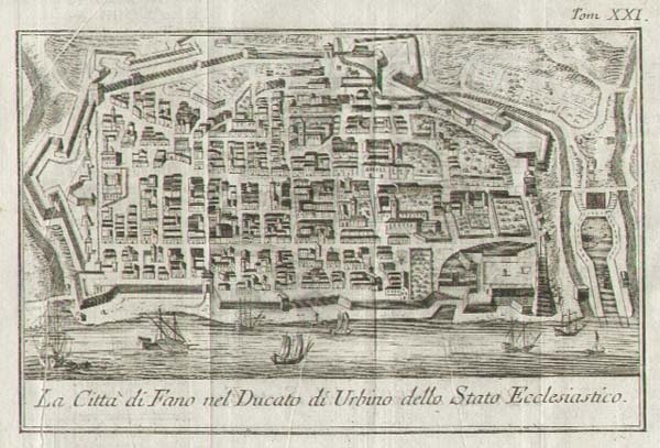 FANO - "La Città di Fano nel Ducato d'Urbino dello Stato Ecclesiastico." Veduta a volo d'uccello