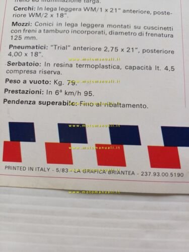 Fantic Motor Trial 125 Professional 1983 depliant originale ITALIANO