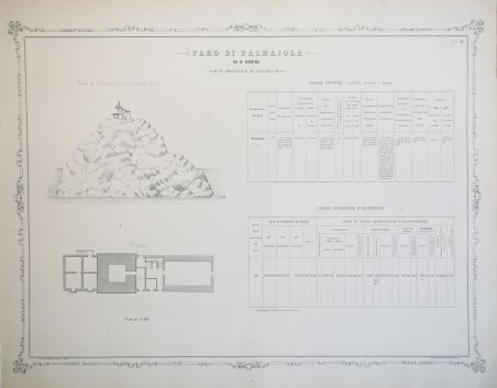 Tavola pubblicata a Firenze dalla Litografia Laudi Steffen / Tipografia della Gazzetta d'Italia, nel 1873. Appartiene al raro ' Album dei Fari illustrato dalle notizie intorno ai loro caratteri e posizione non che da quelle intorno alle spese di costruzione ed impianto e di annuo loro mantenimento ed illuminazione, stampato a Firenze e Roma, sempre nel 1873. ' ' La raccolta costituisce il primo, importante, censimento, con dati e immagini, di tutti i fari dell'Italia; illustrata da 98 tavole in litografia. Ottimo stato di conservazione. Tavola pubblicata a Firenze dalla Litografia Laudi Steffen / Tipografia della Gazzetta d'Italia, nel 1873. Appartiene al raro ' Album dei Fari illustrato dalle notizie intorno ai loro caratteri e posizione non che da quelle intorno alle spese di costruzione ed impianto e di annuo loro mantenimento ed illuminazione, stampato a Firenze e Roma, sempre nel 1873. ' ' La raccolta costituisce il primo, importante, censimento, con dati e immagini, di tutti i fari dell'Italia; illustrata da 98 tavole in litografia. Ottimo stato di conservazione. Cfr.