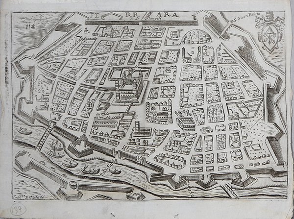 Pianta della città tratta da "Itinerario, overo nova descrittione de' viaggi principali d'Italia […] di Francesco Scoto" edito tra Vicenza e Padova da Francesco Bolzetta tra il 1615 e il 1649. Franz Schott (1548-1622), italianizzato come Francesco Scoto, era originario di Anversa. Giureconsulto e grande viaggiatore, fratello del più noto Andreas, gesuita, filologo e antiquario, redasse "Itinerario overo decrittione de' viaggi principali in Italia". L’opera apparve per la prima volta ad Anversa in occasione del Giubileo del 1600, con il titolo di Itinerari Italiae rerumq[ue] romanarum libri tres, ' stampata nell'Officina Plantiniana da Joannes Moretus. Priva dell'apparato iconografico, era intesa a servizio dei pellegrini che si recavano in Italia ed espressione di una particolare forma di scrittura odeporica che abbracciava tutti quei testi che assumono il carattere di guida per il viaggio e si offrono come strumento rivolto ad orientare il viaggiatore nel suo percorso. Ebbe un grande successo e venne poi pubblicata in numerose edizioni successive in latino, italiano, francese e inglese. L'Itinerario d'Italia ebbe il suo pieno sviluppo nelle numerose edizioni italiane, che furono riccamente illustrate da vedute prospettiche e piante delle città. La prima edizione italiana illustrata fu curata da Pietro Bertelli e Francesco Bolzetta (Vicenza o Venezia 1601); seguirono diverse edizioni di Bolzetta con un sempre crescente numero di illustrazioni cartografiche. Il testo di Schott venne usato per le proprie edizioni dell’Itinerario d’Italia anche da Matteo Cadorin (Padova 1654 e successive) e Pietro Bigonci (Venezia 1665). Anche a Roma, nell’anno giubilare 1650, l'editore Filippo de Rossi stampa l'Itinerario overo Nuova Descrittione de' Viaggi Principali d'Italia. Le stampe sono 19 a cui si aggiunge la mappa dell'Italia e risultano leggermente più accurate. Le tavole dell'edizione romana (realizzate tramite nuove lastre di rame) furono ristampate nelle edizioni successive - accresciute - dagli editori Michelangelo e Pier Vincenzo de Rossi (1669, 1700 e 1717) e quindi in quelle curate da Fausto Amidei, mercante di libri al Corso, che fece stampare da Antonio de Rossi nel 1737 la prime delle sue tre edizioni dell'Itinerario d'Italia ' di Francesco Scoto. Le altre furono nel 1747 nella stamperia del Bernabò e Lazzarini e nel 1761 nella stamperia di Generoso Salomoni. Acquaforte, consuete pieghe di carta editoriali, in ottimo stato di conservazione. Plan of the city taken from "Itinerario, overo nova descrittione de' viaggi principali d'Italia [.] di Francesco Scoto" edited between Vicenza and Padua by Francesco Bolzetta between 1615 and 1649. Franz Schott (1548-1622), Italianized as Francesco Scoto, was a native of Antwerp. A jurist and great traveler, brother of the better known Andreas, a Jesuit, philologist and antiquarian, he compiled "Itinerario overo decrittione de' viaggi principali in Italia." The work first appeared in Antwerp on the occasion of the Jubilee of 1600, under the title Itinerari Italiae rerumq[ue] romanarum libri tres, printed in the Officina Plantiniana by Joannes Moretus. Devoid of the iconographic apparatus, it was intended as a service to pilgrims traveling to Italy and an expression of a particular form of odeporic writing that embraced all those texts that take on the character of a travel guide and offer themselves as a tool aimed at orienting the traveler in his journey. It was a great success and was then published in numerous subsequent editions in Latin, Italian, French and English. The Itinerary of Italy had its full development in the numerous Italian editions, which were richly illustrated with perspective views and city plans. The first illustrated Italian edition was edited by Pietro Bertelli and Francesco Bolzetta (Vicenza or Venice 1601); several editions by Bolzetta followed with an increasing number of cartographic illustrations. Schott's text was also used for their own editions of the Itinerario d'Italia by Matteo Cadorin (Padua 1654 and later) and Pietro Bigonci (Venice 1665). Also in Rome, in the Jubilee year 1650, the publisher Filippo de Rossi printed Itinerario overo Nuova Descrittione de' Viaggi Principali d'Italia. There are 19 prints to which the map of Italy is added, and they are slightly more accurate. The plates of the Roman edition (made by means of new copper plates) were reprinted in later editions - augmented - by the publishers Michelangelo and Pier Vincenzo de Rossi (1669, 1700 and 1717) and then in those edited by Fausto Amidei, a book dealer on the Corso, who had Antonio de Rossi print the first of his three editions of Francesco Scoto's Itinerario d'Italia in 1737. The others were in 1747 in the printing house of Bernabò and Lazzarini and in 1761 in the printing house of Generoso Salomoni. Etching, usual editorial paper folds, in very good condition. Cfr.