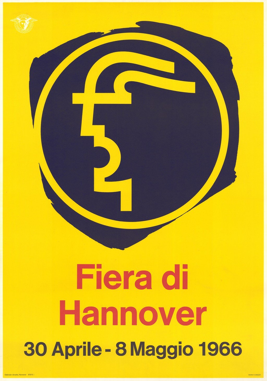 Manifesto originale della Fiera di Hannover, 30 aprile - 8 maggio 1965. Autore: Gebruder Janecke. Luogo: Hannover. Anno: 1966. Tecnica: offset. Dimensioni: 840x600 mm