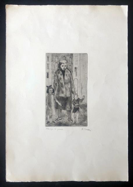Puntasecca su carta, 1955 circa, cm 35 x 50, firmata e presentata a lapis in basso fuori lastra (Stampa a prova R. Grazzini). Renzo Grazzini (Firenze, 1912 - Firenze, 1990) compie gli studi all'Istituto D'Arte di Porta Romana, si diploma nel 1934 e inizia il suo prolifero cammino nella grafica e nella pittura. Abile esecuzione che riesce a interpretare, con tratto acuto e deciso, lo stile grafico del Novecento. Molto buono lo stato di conservazione. .