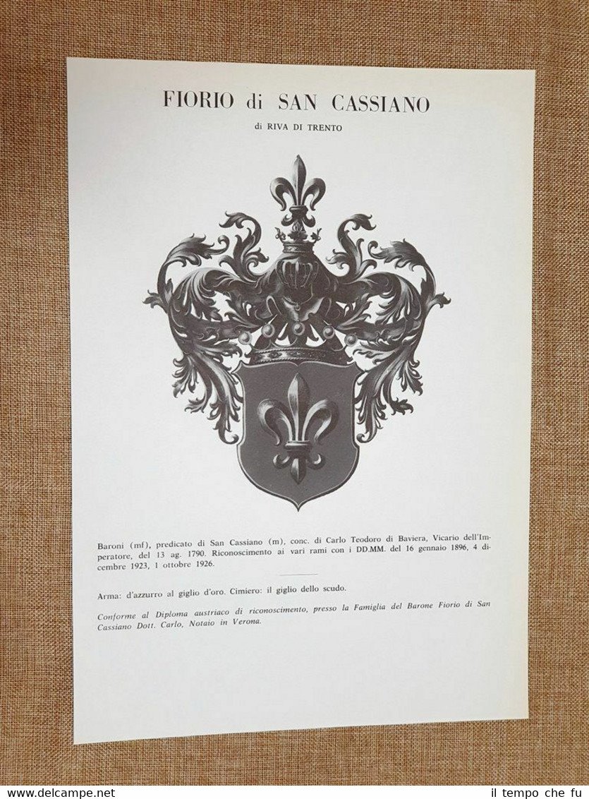 Fiorio di San Cassiano di Riva di Trento Stemma Famiglia Nobile Nobiltà Araldica