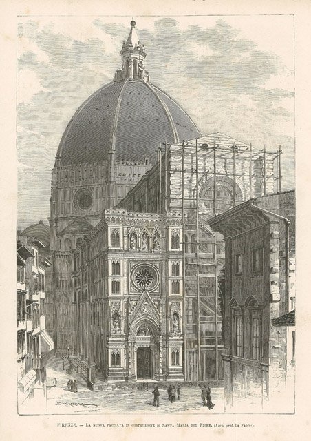 Firenze - La nuova facciata in costruzione di Santa Maria del Fiore | Stampe | Bonamore A. dis. - Barberis inc.
