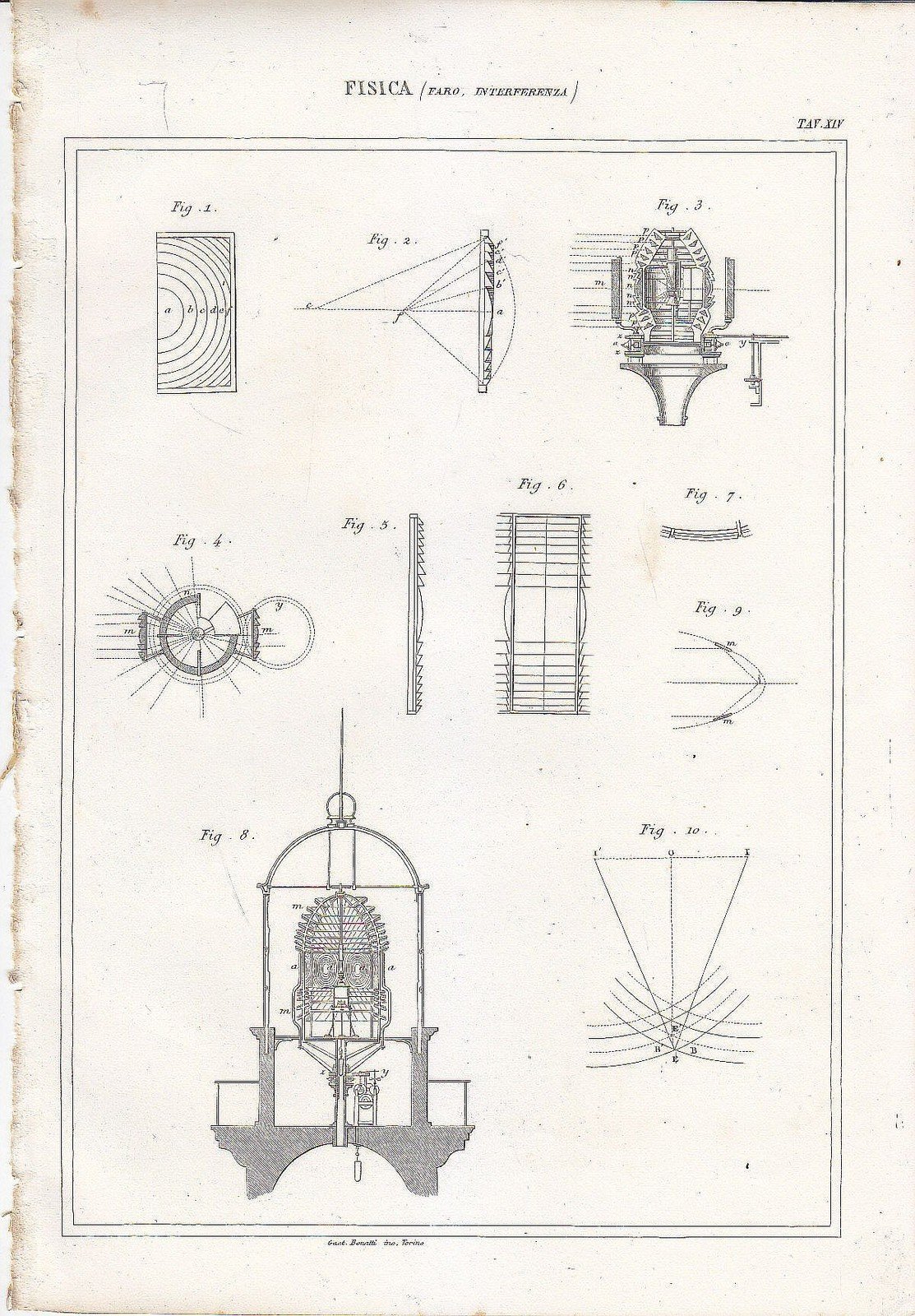 FISICA FARO INTERFERENZA Incisione Stampa Gravure 1866 Tavola Antica Originale