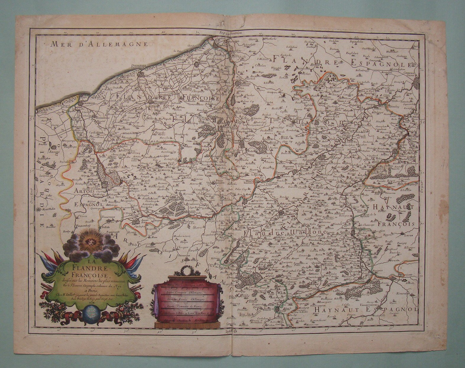 JAILLOT. Flandre Francoise. 1674. Double page engraved map by Jaillot after Sanson. Contemp. hand coloured in outline. Cartouche. Cm.43x58