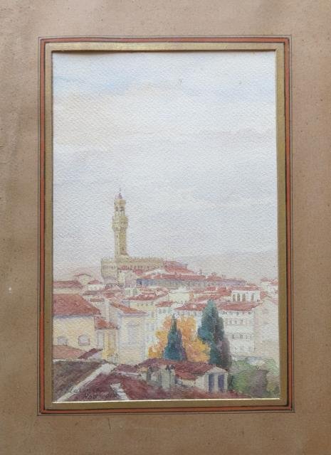 Acquarello su cartoncino, cm 23 x 33,5 circa, titolato e datato in basso a sn. "Florence. 5 Nov. 1910". Di delicata esecuzione e morbidi colori, in coevo passepartout. Molto buono lo stato di conservazione. .