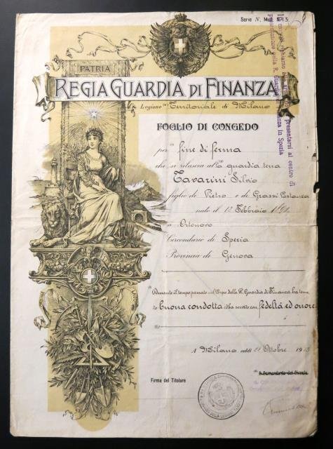 Legione Territoriale di Milano, 25 ottobre 1912. Rilasciato a Tavarini Silvio. Usuali segni del tempo ma in buono stato di conservazione.