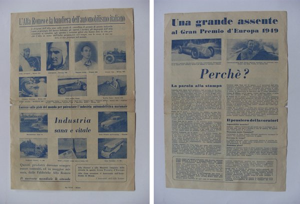 Foglio "L'Alfa Romeo è la bandiera dell'automobilismo italiano" (Gran Premio d'Europa 1949 - Jean Pierre Wimille)
