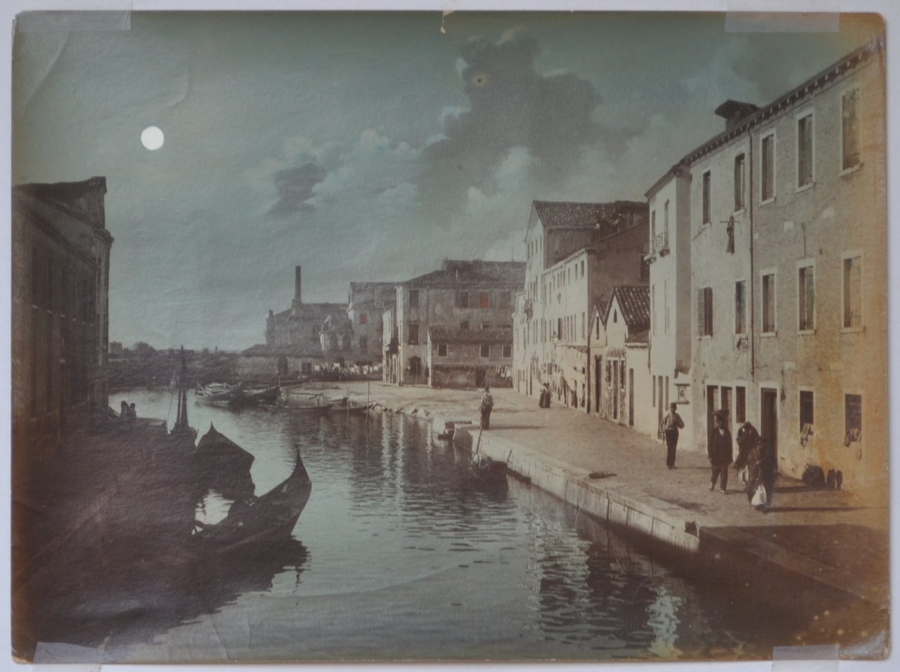 Fotografia originale all'albumina con colorazione a mano ad effetto notturno di mm 251 x 189. Tomaso Filippi (1852 - 1948) può essere considerato il successore del grande fotografo Naya, di cui Filippi diresse lo stabilimento per diversi anni, prima di aprire uno studio autonomo dal 1894.