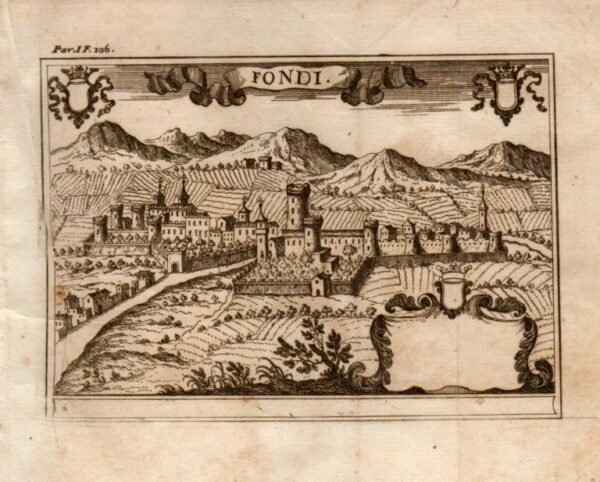 Incisione all'acquaforte, f. 13,5x18,5 cm. ca. In: PACICHELLI, Giovanni Battista - Il Regno di Napoli in prospettiva, Napoli, Stamperia Luigi Mutio