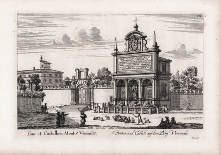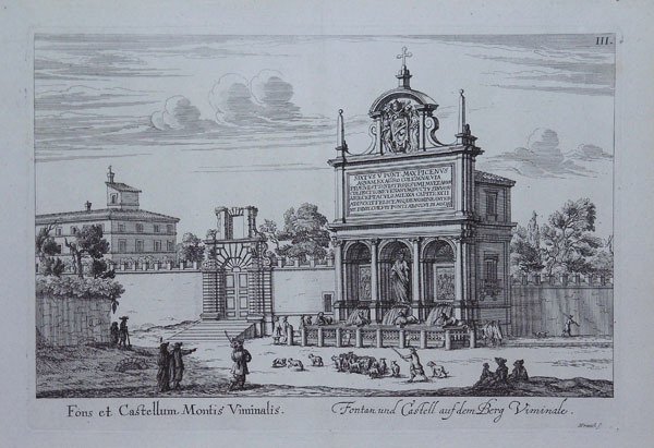 Opera tratta dalla celebre ' Academia Todesca della Architectura, Scultura & Pittura: oder Teutsche Academie der Edlen Bau, Bild-und Mahlerey-Künste, raccolta monumentale, riccamente illustrata da centinaia di incisioni raffiguranti antichità, architettura e mitologia classica, edita a Norimberga e Francoforte tra il 1675 ed il 1680. ' Questo lavoro di Sandrart, pubblicato con il titolo Romanorum Fontinalia Sive Nitidissimorum Perenniumque, Intra & Extra, Urben Roman, deriva dalla serie Le Fontane di Roma di Giovan Battista Falda edita da Giovanni Giacomo de Rossi alla Pace, in 4 volumi, intorno al 1680. Falda, che muore a Roma nel 1678, incise le tavole del primo e del secondo volume, intitolati rispettivamente dal titolo Le Fontane di Roma nelle Piazze, e Luoghi Publici Della Citta e Le fontane delle ville di Frascati, nel Tusculano. Le tavole del terzo e quarto volume, Le fontane ne' palazzi e ne' giardini di Roma e Le fontane del giardino Estense in Tivoli, furono, invece, incisi da Giovani Francesco Venturini. Per le sue incisioni, il Sandrart si avvalse dei suoi collaboratori Karl Gustav von Amling (1650-1703); Philip Kilian (1628-1693); Richard Collin (1627-97); Georg Andreas Wolfgang (1631-1716); Johann Georg Waldreich (d.1680); Melchior Küsel (1626-1683); Franck, Johann (fl.1659-1690); George Christoph Eimmart (1638-1705); Susanna Maria von Sandrart (1658-1716); Bartholomäus Kilian (1630-1696). L'opera è piena di illustrazioni di edifici romani antichi e moderni, scultura, teoria della pittura, biografie di artisti, tra cui artisti tedeschi e contemporanei (cioè del XVII secolo), e antichità. Joachim von Sandrart fu un pittore di una certa importanza, ma è per la sua Teutsche Academie che è principalmente ricordato. Il suo compendioso trattato include sezioni sulla scultura antica e l'architettura, la prospettiva, la teoria della pittura, biografie di artisti, una traduzione delle Metamorfosi di Ovidio e così via. La seconda parte del Libro I pretende di dare una storia dell'arte dalle sue prime origini, e si apre con un'incisione di due scene di racconti leggendari della scoperta del disegno. L'opera è dedicata alla nazione tedesca di fama mondiale e ai campioni e amanti dell'arte ('Der Welt-berühmten Teutschen Nation . Kunst-Helden und Kunstliebenden'). Acquaforte, con margini, ottimo stato di conservazione. Bibliografia National Gallery (Washington), ' Mark J. Millard, III (1998), no. 111; F.W. H. Hollstein, ' German engravings . ca. 1400-1700 ' (1954-), 38-41; Anna Schreurs, ' Unter Minerva schutz: bildung durch kunst in Joachim von Sandrarts 'Teutscher Academie' ' (2012). Plate taken fom the monumental ' Academia Todesca della Architectura, Scultura & Pittura: oder Teutsche Academie der Edlen Bau, Bild-und Mahlerey-Künste ' (Deutsche Academy of Architecture - Sculpture – Painting). ' This work by Sandrart, published under the title Romanorum Fontinalia Sive Nitidissimorum Perenniumque, Intra & Extra, Urben Roman, derives from the series Le Fontane di Roma by Giovan Battista Falda published by Giovanni Giacomo de Rossi alla Pace, in 4 volumes, around 1680. Falda, who died in Rome in 1678, engraved the plates of the first and second volume, entitled respectively Le Fontane di Roma nelle Piazze, e Luoghi Publici Della Citta and Le fontane delle ville di Frascati, nel Tusculano. The plates of the third and fourth volume, Le fontane ne' palazzi e ne' giardini di Roma and Le fontane del giardino Estense in Tivoli, were instead engraved by Giovani Francesco Venturini. The first edition, in German, was published by Joachim von Sandrart in Nuremberg, in three volumes respectively in 1675, 1679 and 1680. For the plates Sandrart used his students as and many others artist as Karl Gustav von Amling (1650-1703); Philip Kilian (1628-1693); Richard Collin (1627-97); Georg Andreas Wolfgang (1631-1716); Johann Georg Waldreich (d.1680); Melchior Küsel (1626-1683); Franck, Johann (fl.1659-1690); George Christoph Eimmart (1638-1705); Susanna Maria von Sandrart (1658-1716); Bartholomäus Kilian (1630-1696). The work is full of illustrations of ancient and modern Roman buildings, sculpture, the theory of painting, biographies of artists, including German and contemporary (ie seventeenth-century) artists, and antiquities. Joachim von Sandrart was a painter of some note but it is for his Teutsche Academie that he is chiefly remembered. His compendious treatise includes sections on ancient sculpture and architecture, perspective, the theory of painting, artists’ biographies, a translation of Ovid’s Metamorphoses and so on. The second part of Book I purports to give a history of art from its earliest origins, and opens with an engraving of two scenes of legendary accounts of the discovery of drawing. The frontispiece to Volume I is signed as drawn by J. de Sandrart and engraved by C.G. Amling; that of Volume II is signed as drawn by Sandrart and engraved by R. Collin. The portrait in Volume I is signed as painted by J.U. Mair and engraved by P. Kilian; that in Volume II is signed as engraved by R. Collin. Many plates are signed as drawn by Sandrart and engraved by R. Collin or other engravers (J. Franck, G.A. Wolfgang, J.G. Waldreich, I.I. Thourneyser, Melchior Küsell, G. C. Eimmart, B. Kilian, Jacob Sandrart, Joh. Meyer, Susanna von Sandrart, J.A. Boener, C. Meyer). Many plates are unsigned. The work is dedicated to the world-renowned German nation and to champions and lovers of art ('Der Welt-berühmten Teutschen Nation . Kunst-Helden und Kunstliebenden'). Etching with margins, very good condition. References National Gallery (Washington), ' Mark J. Millard, III (1998), no. 111; F.W. H. Hollstein, ' German engravings . ca. 1400-1700 ' (1954-), 38-41; Anna Schreurs, ' Unter Minerva schutz: bildung durch kunst in Joachim von Sandrarts 'Teutscher Academie' ' (2012). Cfr.
