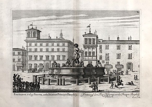 Fons in area, vulgo Navona, ante Palatium Principis Pamphilij. Fontan auf dem Plaz Novona, vor des Prinzen Pamphilij Palast