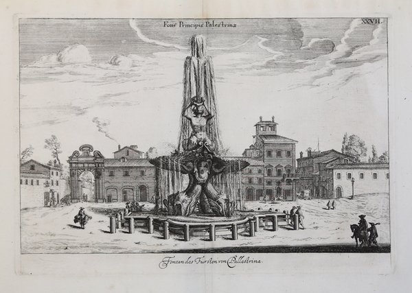 Opera tratta dalla celebre ' Academia Todesca della Architectura, Scultura & Pittura: oder Teutsche Academie der Edlen Bau, Bild-und Mahlerey-Künste, raccolta monumentale, riccamente illustrata da centinaia di incisioni raffiguranti antichità, architettura e mitologia classica, edita a Norimberga e Francoforte tra il 1675 ed il 1680. ' Questo lavoro di Sandrart, pubblicato con il titolo Romanorum Fontinalia Sive Nitidissimorum Perenniumque, Intra & Extra, Urben Roman, deriva dalla serie Le Fontane di Roma di Giovan Battista Falda edita da Giovanni Giacomo de Rossi alla Pace, in 4 volumi, intorno al 1680. Falda, che muore a Roma nel 1678, incise le tavole del primo e del secondo volume, intitolati rispettivamente dal titolo Le Fontane di Roma nelle Piazze, e Luoghi Publici Della Citta e Le fontane delle ville di Frascati, nel Tusculano. Le tavole del terzo e quarto volume, Le fontane ne' palazzi e ne' giardini di Roma e Le fontane del giardino Estense in Tivoli, furono, invece, incisi da Giovani Francesco Venturini. Per le sue incisioni, il Sandrart si avvalse dei suoi collaboratori Karl Gustav von Amling (1650-1703); Philip Kilian (1628-1693); Richard Collin (1627-97); Georg Andreas Wolfgang (1631-1716); Johann Georg Waldreich (d.1680); Melchior Küsel (1626-1683); Franck, Johann (fl.1659-1690); George Christoph Eimmart (1638-1705); Susanna Maria von Sandrart (1658-1716); Bartholomäus Kilian (1630-1696). ' L'opera è piena di illustrazioni di edifici romani antichi e moderni, scultura, teoria della pittura, biografie di artisti, tra cui artisti tedeschi e contemporanei (cioè del XVII secolo), e antichità. Joachim von Sandrart fu un pittore di una certa importanza, ma è per la sua Teutsche Academie che è principalmente ricordato. Il suo compendioso trattato include sezioni sulla scultura antica e l'architettura, la prospettiva, la teoria della pittura, biografie di artisti, una traduzione delle Metamorfosi di Ovidio e così via. La seconda parte del Libro I pretende di dare una storia dell'arte dalle sue prime origini, e si apre con un'incisione di due scene di racconti leggendari della scoperta del disegno. L'opera è dedicata alla nazione tedesca di fama mondiale e ai campioni e amanti dell'arte ('Der Welt-berühmten Teutschen Nation . Kunst-Helden und Kunstliebenden'). Acquaforte, con margini, ottimo stato di conservazione. Bibliografia National Gallery (Washington), ' Mark J. Millard, III (1998), no. 111; F.W. H. Hollstein, ' German engravings . ca. 1400-1700 ' (1954-), 38-41; Anna Schreurs, ' Unter Minerva schutz: bildung durch kunst in Joachim von Sandrarts 'Teutscher Academie' ' (2012). Plate taken fom the monumental ' Academia Todesca della Architectura, Scultura & Pittura: oder Teutsche Academie der Edlen Bau, Bild-und Mahlerey-Künste ' (Deutsche Academy of Architecture - Sculpture – Painting). ' This work by Sandrart, published under the title Romanorum Fontinalia Sive Nitidissimorum Perenniumque, Intra & Extra, Urben Roman, derives from the series Le Fontane di Roma by Giovan Battista Falda published by Giovanni Giacomo de Rossi alla Pace, in 4 volumes, around 1680. Falda, who died in Rome in 1678, engraved the plates of the first and second volume, entitled respectively Le Fontane di Roma nelle Piazze, e Luoghi Publici Della Citta and Le fontane delle ville di Frascati, nel Tusculano. The plates of the third and fourth volume, Le fontane ne' palazzi e ne' giardini di Roma and Le fontane del giardino Estense in Tivoli, were instead engraved by Giovani Francesco Venturini. The first edition, in German, was published by Joachim von Sandrart in Nuremberg, in three volumes respectively in 1675, 1679 and 1680. For the plates Sandrart used his students as and many others artist as Karl Gustav von Amling (1650-1703); Philip Kilian (1628-1693); Richard Collin (1627-97); Georg Andreas Wolfgang (1631-1716); Johann Georg Waldreich (d.1680); Melchior Küsel (1626-1683); Franck, Johann (fl.1659-1690); George Christoph Eimmart (1638-1705); Susanna Maria von Sandrart (1658-1716); Bartholomäus Kilian (1630-1696). The work is full of illustrations of ancient and modern Roman buildings, sculpture, the theory of painting, biographies of artists, including German and contemporary (ie seventeenth-century) artists, and antiquities. Joachim von Sandrart was a painter of some note but it is for his Teutsche Academie that he is chiefly remembered. His compendious treatise includes sections on ancient sculpture and architecture, perspective, the theory of painting, artists’ biographies, a translation of Ovid’s Metamorphoses and so on. The second part of Book I purports to give a history of art from its earliest origins, and opens with an engraving of two scenes of legendary accounts of the discovery of drawing. The frontispiece to Volume I is signed as drawn by J. de Sandrart and engraved by C.G. Amling; that of Volume II is signed as drawn by Sandrart and engraved by R. Collin. The portrait in Volume I is signed as painted by J.U. Mair and engraved by P. Kilian; that in Volume II is signed as engraved by R. Collin. Many plates are signed as drawn by Sandrart and engraved by R. Collin or other engravers (J. Franck, G.A. Wolfgang, J.G. Waldreich, I.I. Thourneyser, Melchior Küsell, G. C. Eimmart, B. Kilian, Jacob Sandrart, Joh. Meyer, Susanna von Sandrart, J.A. Boener, C. Meyer). Many plates are unsigned. The work is dedicated to the world-renowned German nation and to champions and lovers of art ('Der Welt-berühmten Teutschen Nation . Kunst-Helden und Kunstliebenden'). Etching with margins, very good condition. References National Gallery (Washington), ' Mark J. Millard, III (1998), no. 111; F.W. H. Hollstein, ' German engravings . ca. 1400-1700 ' (1954-), 38-41; Anna Schreurs, ' Unter Minerva schutz: bildung durch kunst in Joachim von Sandrarts 'Teutscher Academie' ' (2012). Cfr.