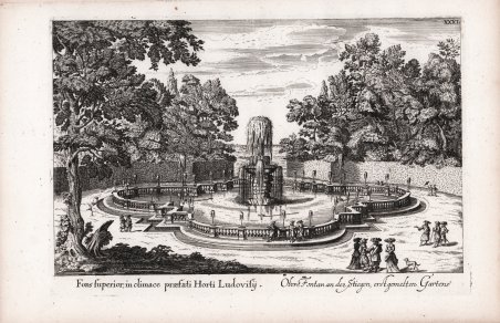 Opera tratta dalla celebre ' Academia Todesca della Architectura, Scultura & Pittura: oder Teutsche Academie der Edlen Bau, Bild-und Mahlerey-Künste, raccolta monumentale, riccamente illustrata da centinaia di incisioni raffiguranti antichità, architettura e mitologia classica, edita a Norimberga e Francoforte tra il 1675 ed il 1680. ' Questo lavoro di Sandrart, pubblicato con il titolo ' Romanorum Fontinalia Sive Nitidissimorum Perenniumque, Intra & Extra, Urben Roman, ' deriva dalla serie ' Le Fontane di Roma ' di Giovan Battista Falda edita da Giovanni Giacomo de Rossi ' alla Pace, in 4 volumi, intorno al 1680. Falda, che muore a Roma nel 1678, incise le tavole del primo e del secondo volume, intitolati rispettivamente dal titolo ' Le Fontane di Roma nelle Piazze, e Luoghi Publici Della Citta ' e ' Le fontane delle ville di Frascati, nel Tusculano. Le tavole del terzo e quarto volume, ' Le fontane ne' palazzi e ne' giardini di Roma ' e ' Le fontane del giardino Estense in Tivoli, ' furono, invece, incisi da Giovani Francesco Venturini. Per le sue incisioni, il Sandrart si avvalse dei suoi collaboratori Karl Gustav von Amling (1650-1703); Philip Kilian (1628-1693); Richard Collin (1627-97); Georg Andreas Wolfgang (1631-1716); Johann Georg Waldreich (d.1680); Melchior Küsel (1626-1683); Franck, Johann (fl.1659-1690); George Christoph Eimmart (1638-1705); Susanna Maria von Sandrart (1658-1716); Bartholomäus Kilian (1630-1696). L'opera è piena di illustrazioni di edifici romani antichi e moderni, scultura, teoria della pittura, biografie di artisti, tra cui artisti tedeschi e contemporanei (cioè del XVII secolo), e antichità. Joachim von Sandrart fu un pittore di una certa importanza, ma è per la sua ' Teutsche Academie ' che è principalmente ricordato. Il suo compendioso trattato include sezioni sulla scultura antica e l'architettura, la prospettiva, la teoria della pittura, biografie di artisti, una traduzione delle Metamorfosi di Ovidio e così via. La seconda parte del Libro I pretende di dare una storia dell'arte dalle sue prime origini, e si apre con un'incisione di due scene di racconti leggendari della scoperta del disegno. L'opera è dedicata alla nazione tedesca di fama mondiale e ai campioni e amanti dell'arte ('Der Welt-berühmten Teutschen Nation . Kunst-Helden und Kunstliebenden'). Acquaforte, con margini, ottimo stato di conservazione. Bibliografia National Gallery (Washington), ' Mark J. Millard, III (1998), no. 111; F.W. H. Hollstein, ' German engravings . ca. 1400-1700 ' (1954-), 38-41; Anna Schreurs, ' Unter Minerva schutz: bildung durch kunst in Joachim von Sandrarts 'Teutscher Academie' ' (2012). Plate taken fom the monumental ' Academia Todesca della Architectura, Scultura & Pittura: oder Teutsche Academie der Edlen Bau, Bild-und Mahlerey-Künste ' (Deutsche Academy of Architecture - Sculpture – Painting). ' This work by Sandrart, published under the title ' Romanorum Fontinalia Sive Nitidissimorum Perenniumque, Intra & Extra, Urben Roman, derives from the series ' Le Fontane di Roma ' by Giovan Battista Falda published by Giovanni Giacomo de Rossi ' alla Pace, in 4 volumes, around 1680. Falda, who died in Rome in 1678, engraved the plates of the first and second volume, entitled respectively ' Le Fontane di Roma nelle Piazze, e Luoghi Publici Della Citta ' and ' Le fontane delle ville di Frascati, nel Tusculano. The plates of the third and fourth volume, ' Le fontane ne' palazzi e ne' giardini di Roma ' and ' Le fontane del giardino Estense in Tivoli, were instead engraved by Giovani Francesco Venturini. The first edition, in German, was published by Joachim von Sandrart in Nuremberg, in three volumes respectively in 1675, 1679 and 1680. For the plates Sandrart used his students as and many others artist as ' Karl Gustav von Amling (1650-1703); Philip Kilian (1628-1693); Richard Collin (1627-97); Georg Andreas Wolfgang (1631-1716); Johann Georg Waldreich (d.1680); Melchior Küsel (1626-1683); Franck, Johann (fl.1659-1690); George Christoph Eimmart (1638-1705); Susanna Maria von Sandrart (1658-1716); Bartholomäus Kilian (1630-1696). The work is full of illustrations of ancient and modern Roman buildings, sculpture, the theory of painting, biographies of artists, including German and contemporary (ie seventeenth-century) artists, and antiquities. Joachim von Sandrart was a painter of some note but it is for his ' Teutsche Academie ' that he is chiefly remembered. His compendious treatise includes sections on ancient sculpture and architecture, perspective, the theory of painting, artists’ biographies, a translation of Ovid’s Metamorphoses and so on. The second part of Book I purports to give a history of art from its earliest origins, and opens with an engraving of two scenes of legendary accounts of the discovery of drawing. The frontispiece to Volume I is signed as drawn by J. de Sandrart and engraved by C.G. Amling; that of Volume II is signed as drawn by Sandrart and engraved by R. Collin. The portrait in Volume I is signed as painted by J.U. Mair and engraved by P. Kilian; that in Volume II is signed as engraved by R. Collin. Many plates are signed as drawn by Sandrart and engraved by R. Collin or other engravers (J. Franck, G.A. Wolfgang, J.G. Waldreich, I.I. Thourneyser, Melchior Küsell, G. C. Eimmart, B. Kilian, Jacob Sandrart, Joh. Meyer, Susanna von Sandrart, J.A. Boener, C. Meyer). Many plates are unsigned.The work is dedicated to the world-renowned German nation and to champions and lovers of art ('Der Welt-berühmten Teutschen Nation . Kunst-Helden und Kunstliebenden'). Etching with margins, very good condition. References National Gallery (Washington), ' Mark J. Millard, III (1998), no. 111; F.W. H. Hollstein, ' German engravings . ca. 1400-1700 ' (1954-), 38-41; Anna Schreurs, ' Unter Minerva schutz: bildung durch kunst in Joachim von Sandrarts 'Teutscher Academie' ' (2012). Cfr.