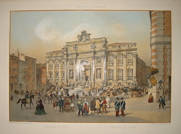 Litografia originale (cm. 36x25 più ampi margini bianchi) tratta dall’opera ‘Rome dans sa Grandeur’. Ottimo esemplare. Raffinata coloritura all’acquerello.