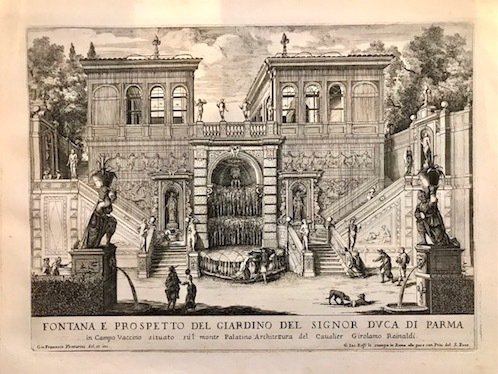 Fontana e prospetto del Giardino del Signor Duca di Parma in Campo Vaccino situato sul monte Palatino. Architettura del Cavalier Girolamo Rainaldi