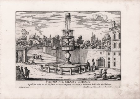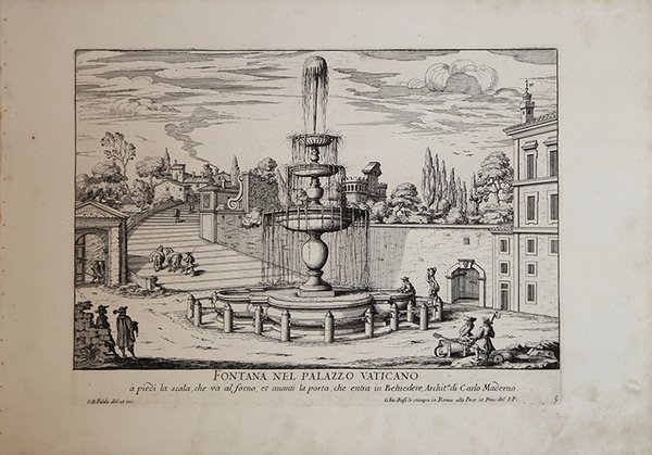 Fontana nel Palazzo Vaticano a piedi la scala, che va al forno, et avanti la porta, che entra in Belvedere, Archit.a di Carl