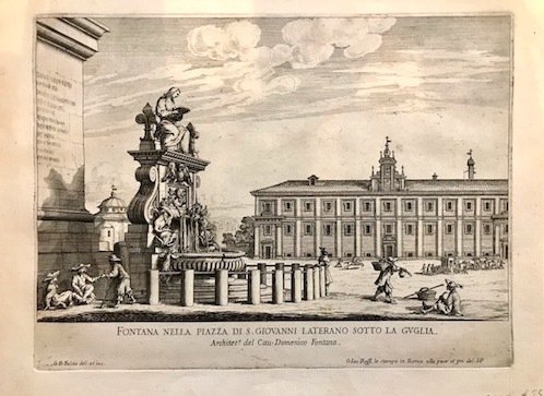 Fontana nella Piazza di S. Giovanni Laterano sotto la guglia. Architet.a del Cav. Domenico Fontana