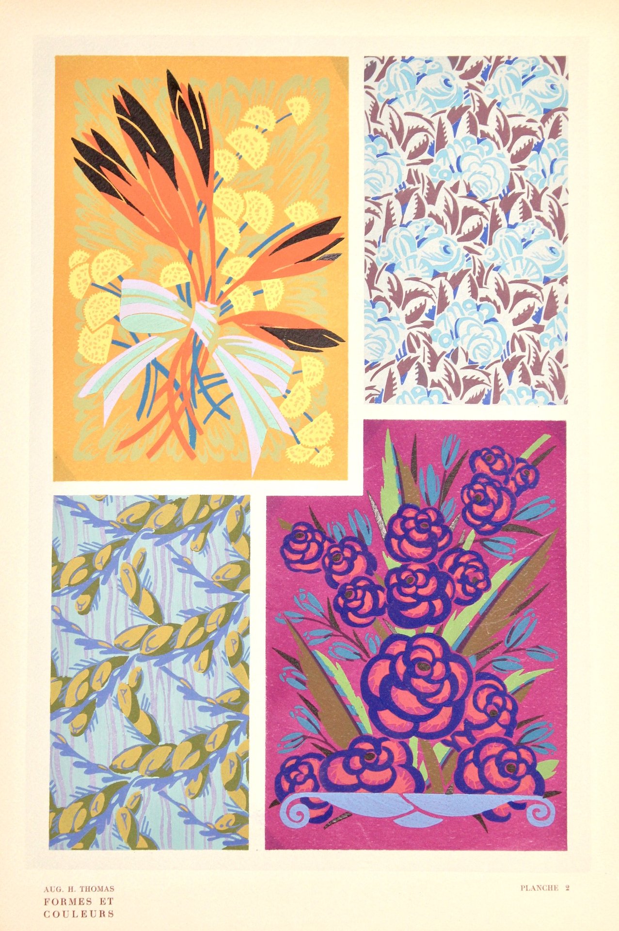 Pochoir originale a colori d'epoca, mm 390x260. Buon esemplare con piccoli difetti alle estremità dei margini.<BR>Cfr. L'arte decorativa dal Liberty al Déco. Natura fonte di ispirazione. <BR>