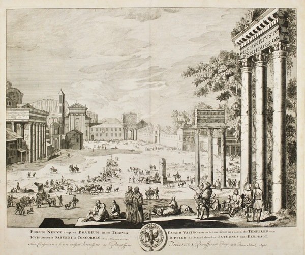 Forum Nervae, imp et Boarium in eo Templa Iovis Statoris Saturni, et Concordiae